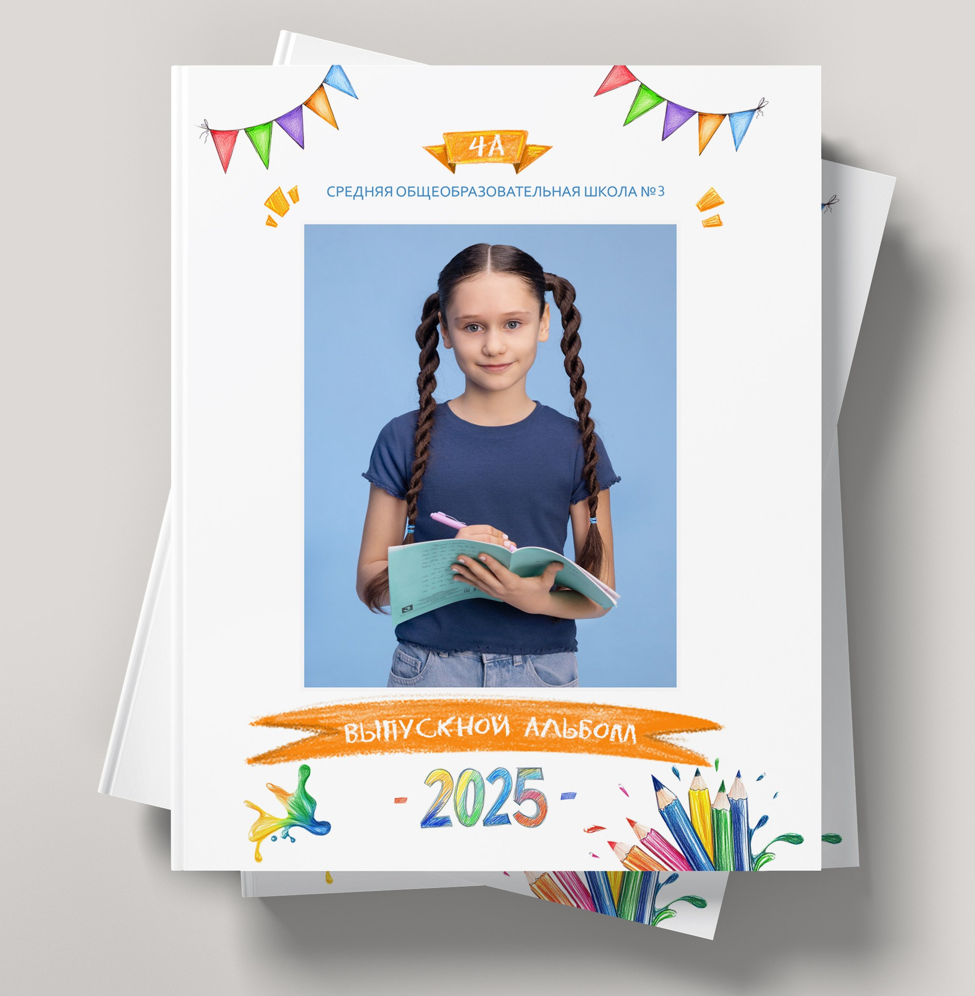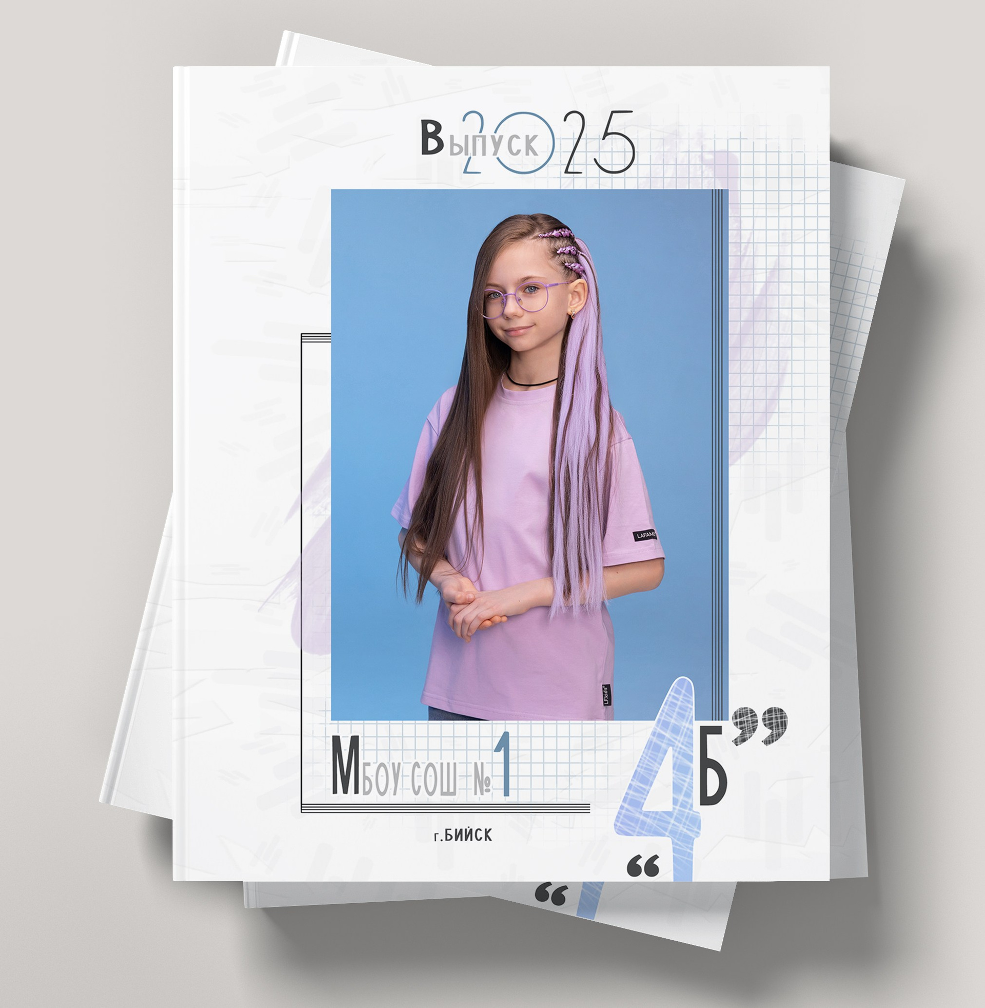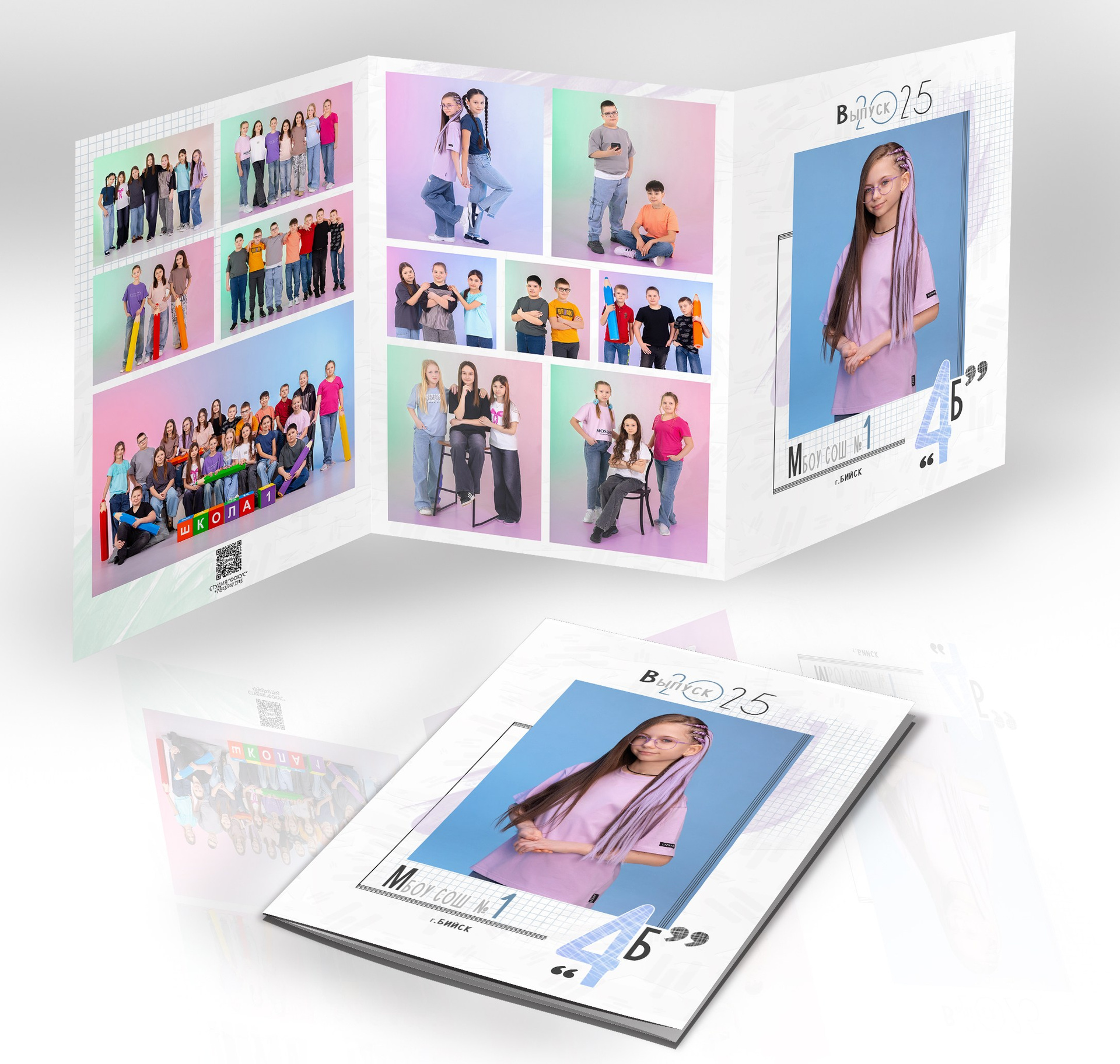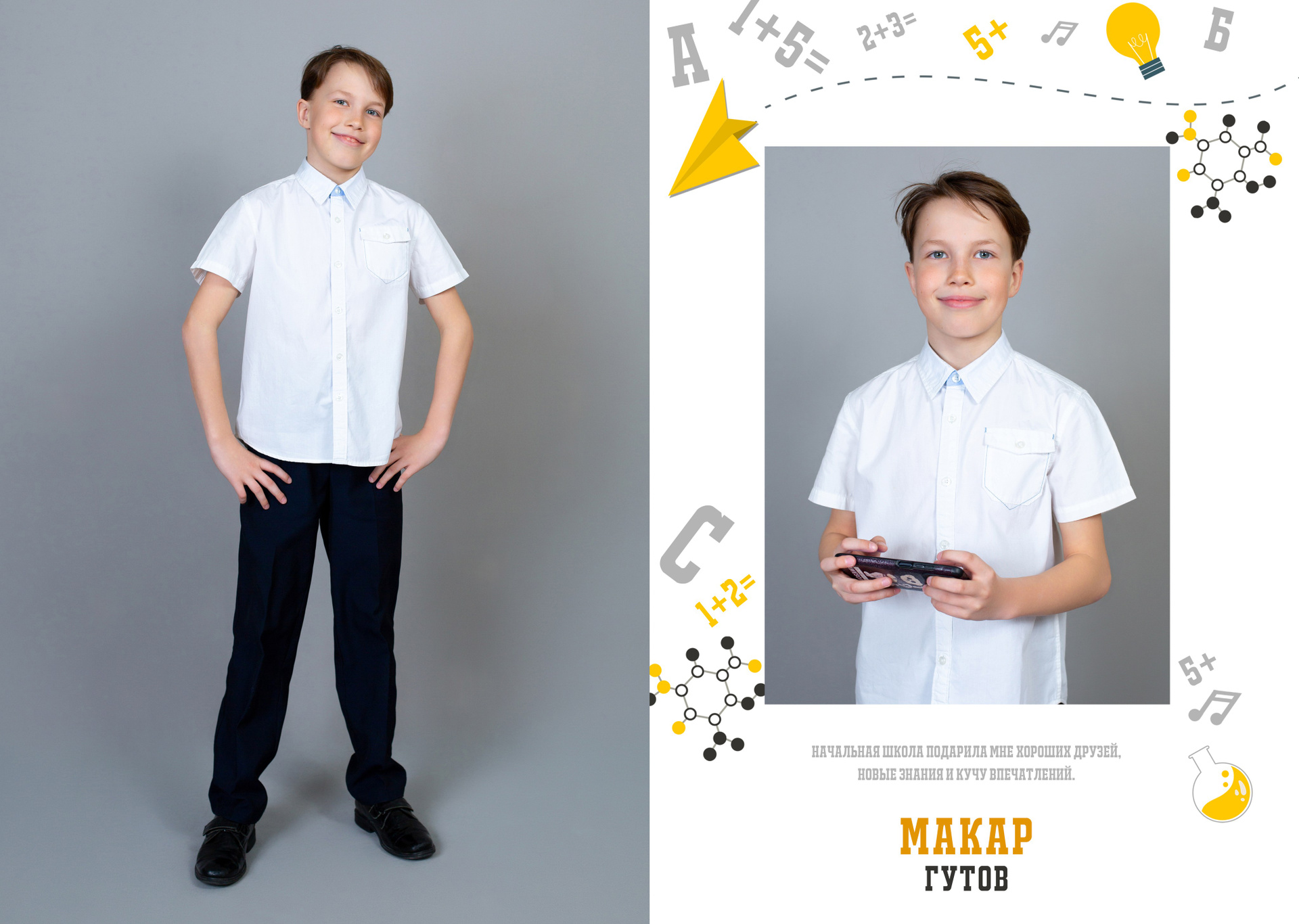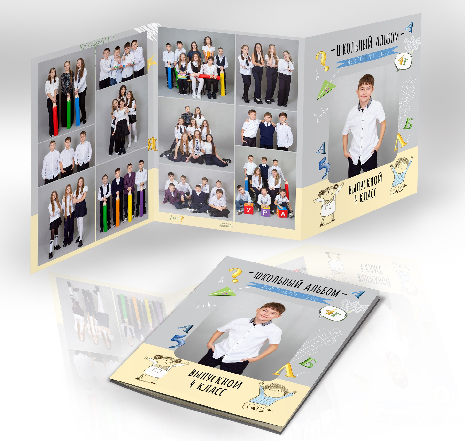 1 разворот: полностью индивидуальный для ребенка, две его фотографии + короткое интервью о его жизни в школе.