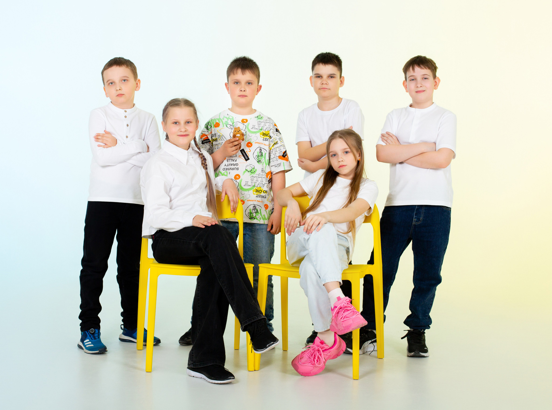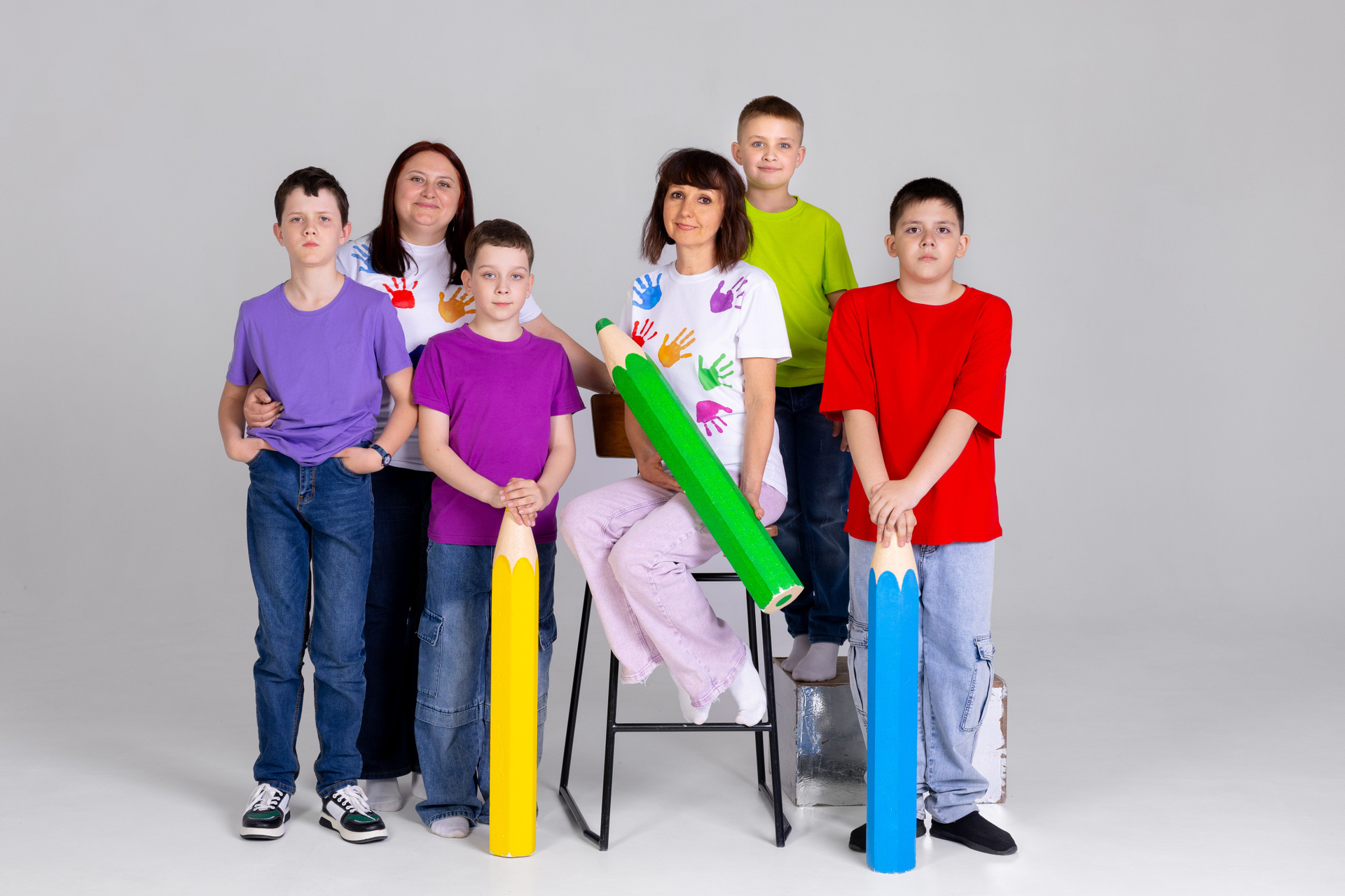 В данном проекте хорошо сочетаются варианты съемки с переодеванием, в одних сюжетах дети участвуют в классической школьной форме, в других сюжетах более свободная одежда (обговариваем дополнительно эти моменты).