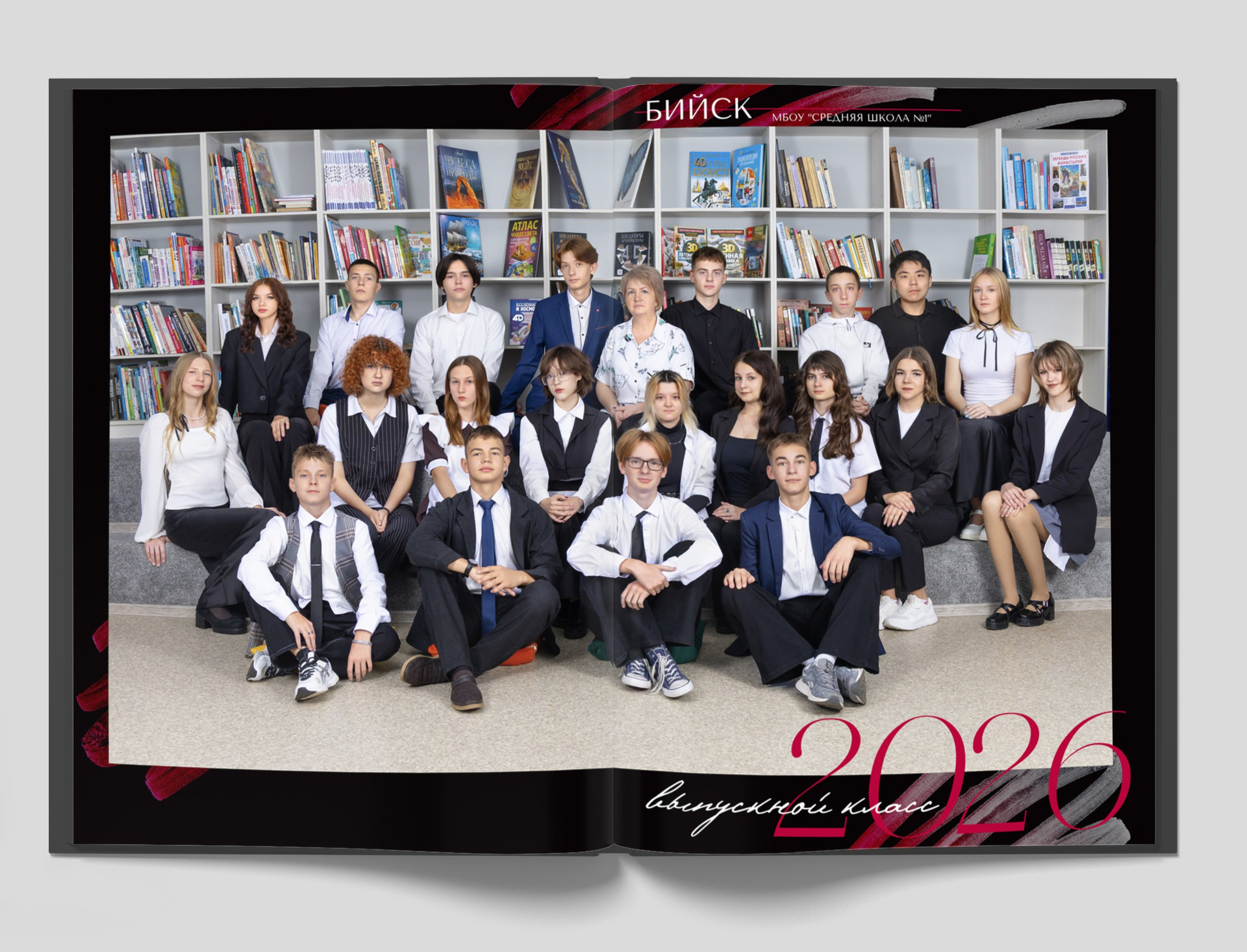 3 разворот: Фотография общая всего класса на разворот альбома размером 42*30 см— шикарное завершение альбома.