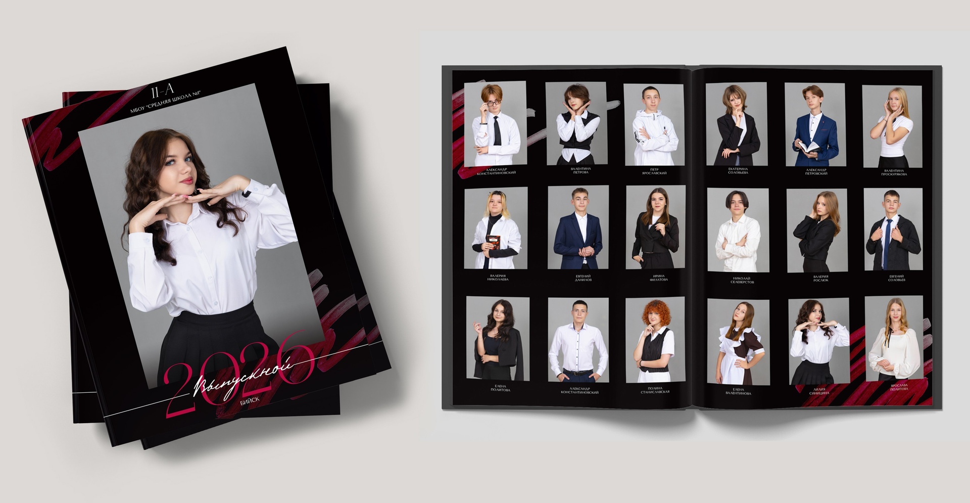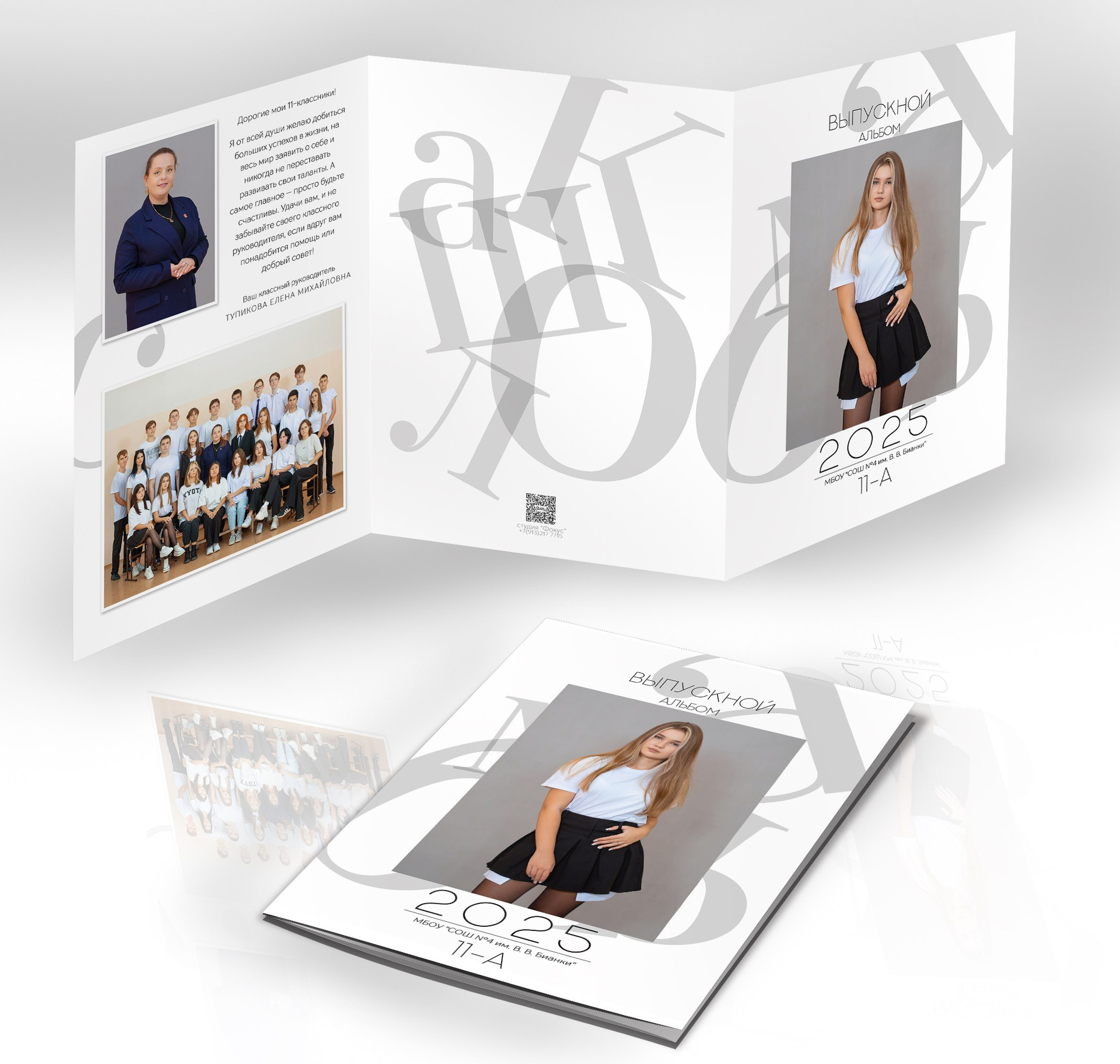 Ниже в ленте прилагаются образцы в другом оформлении — другой дизайн и съемка в школе и в студии.